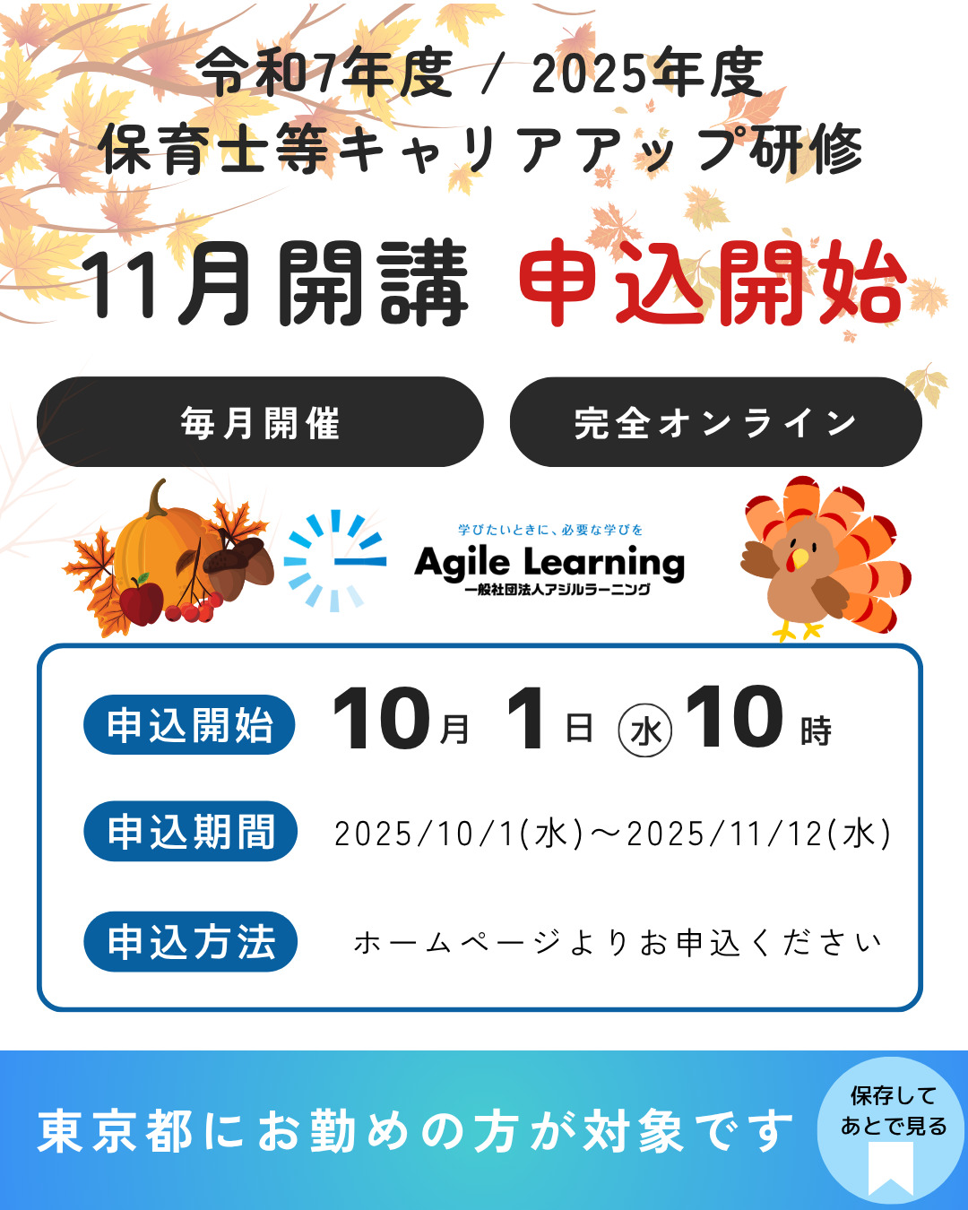 一般社団法人アジルラーニングの保育士等キャリアアップ研修をご受講いただきあり