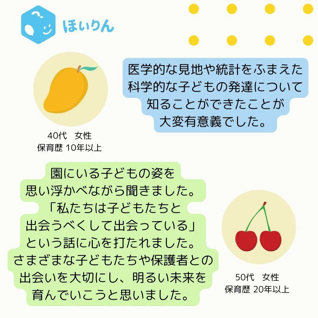またオンラインセミナー中にいただいた質問で時間の都合上、お答えできなかった内容は、週刊ほいはうの「保育の質問箱」にて、小嶋先生にご回答いただき、配信しております。